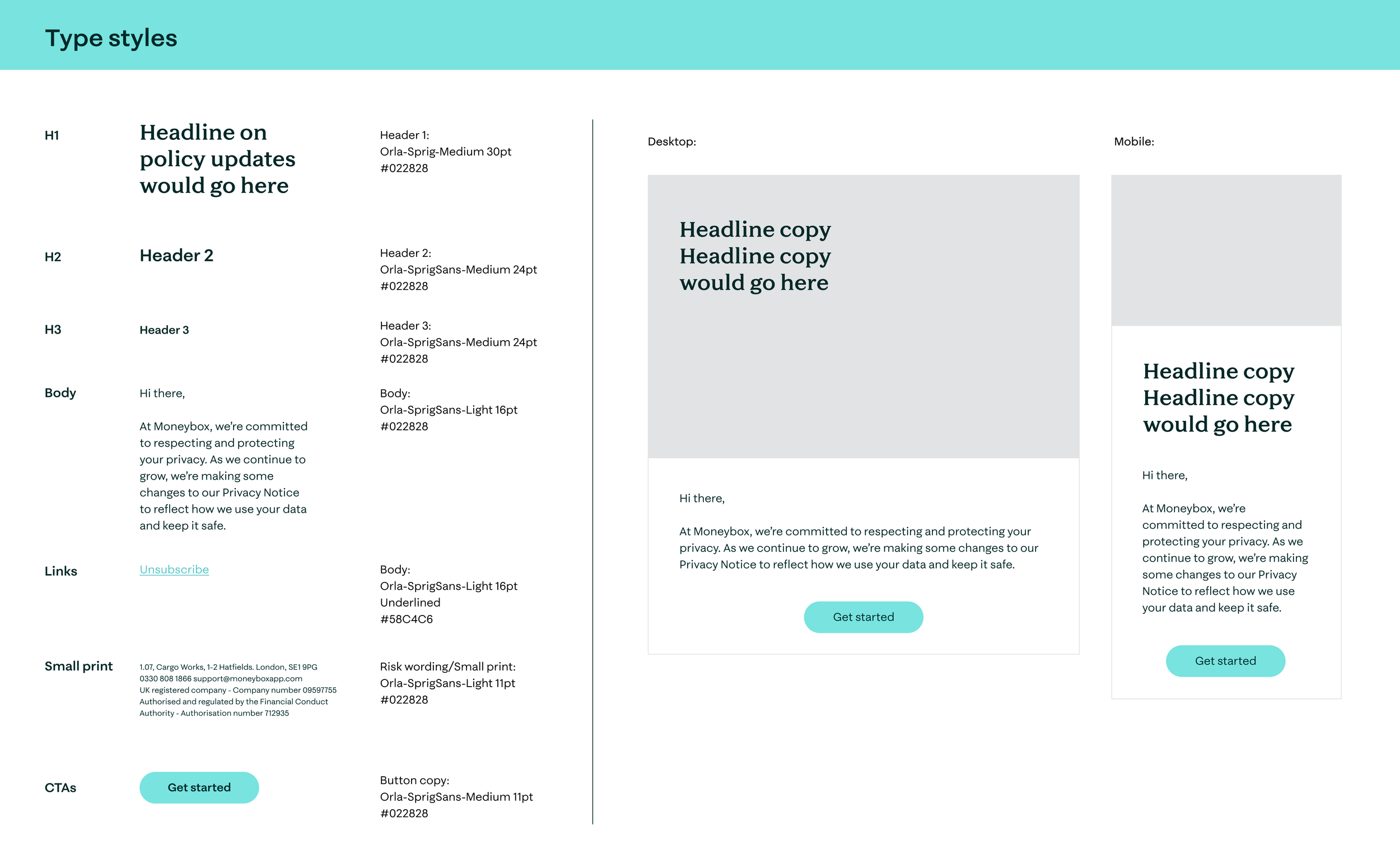 I designed a component-based email system built around reusable modules (headers, body blocks, CTAs, imagery, risk warnings), allowing CRM teams to assemble emails quickly without bespoke design work while maintaining brand consistency across campaigns. It also meant the team could easily adapt layouts for different lifecycle moments.
